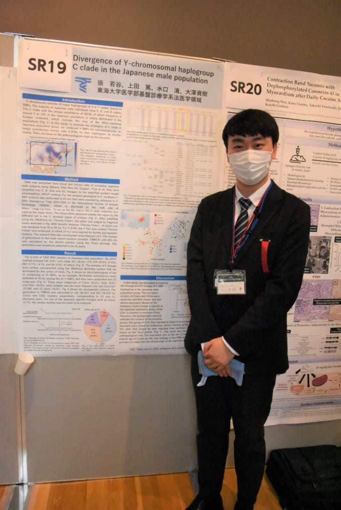 学生研究発表としては、大学院生の張が「Divergence of Y-chromosomal haplogroup C clade in the Japanese male population」と題した発表を行いました。